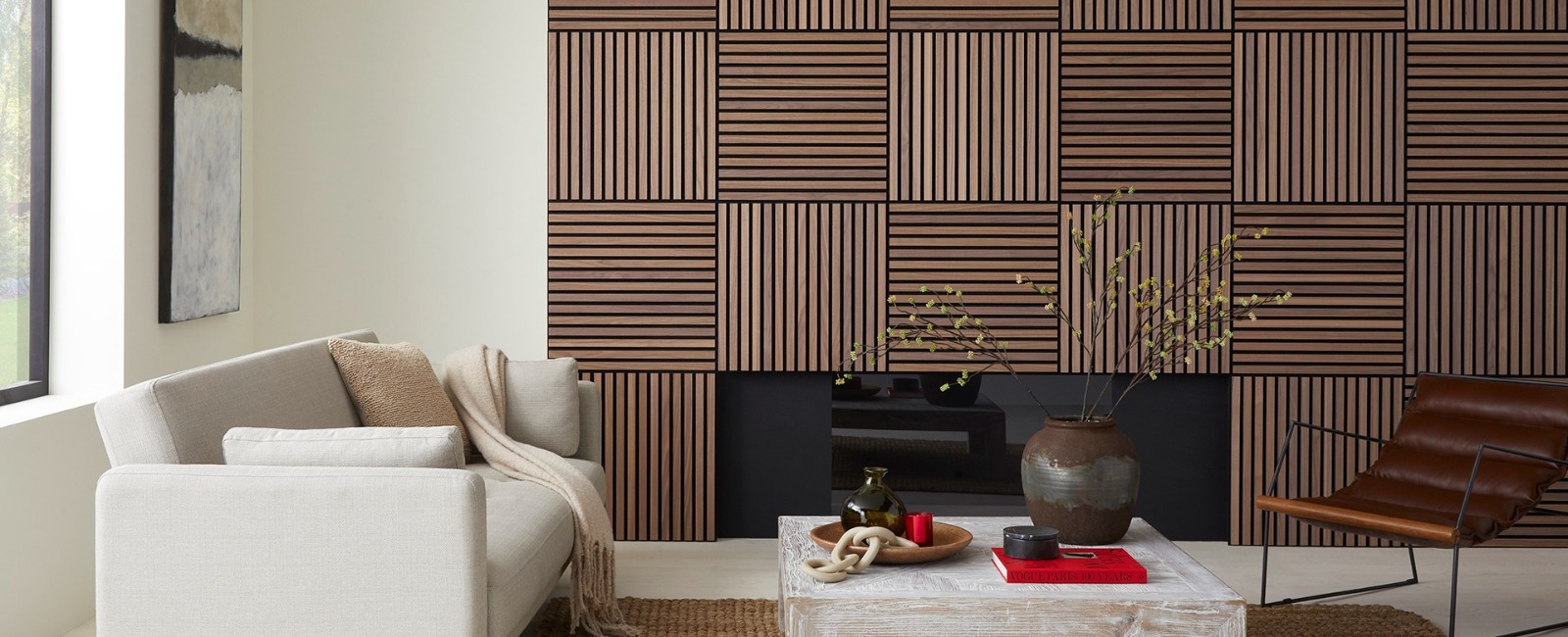 SlatSolution’s wide range of finishes—from light oak and walnut to dark, richly stained tones—ensures that homeowners can find the perfect Decorative Wood style to complement their personal aesthetic.